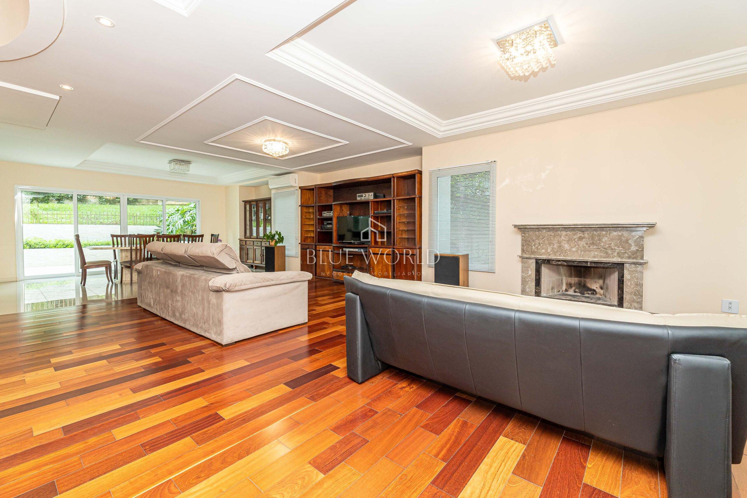 Sala ampla com lareira